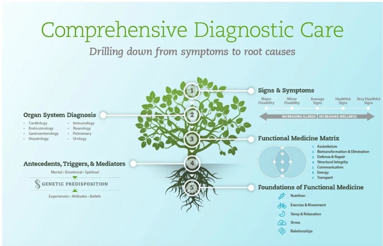 Functional medicine utilizes comprehensive utilizes comprehensive testing to identify imbalances and deficiencies, guiding the targeted use of supplements to support the body's natural healing processes.